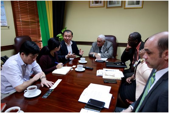 Henry對劉志江一行表示歡迎,并對今年2月訪問中材股份時受到的禮遇和款待表示感謝。他進一步介紹了2月在華會談以來,牙買加政府在促進投資和經濟發展上的新舉措。Henry講到,牙買加礦產資源豐富,盛產鋁礬土、稀土和石灰石等資源,希望雙方能依托資源的供需契機,達成多方面戰略合作。11月牙買加將舉行“礦產資源周”,歡迎中國建材集團參加并商談投資合作。