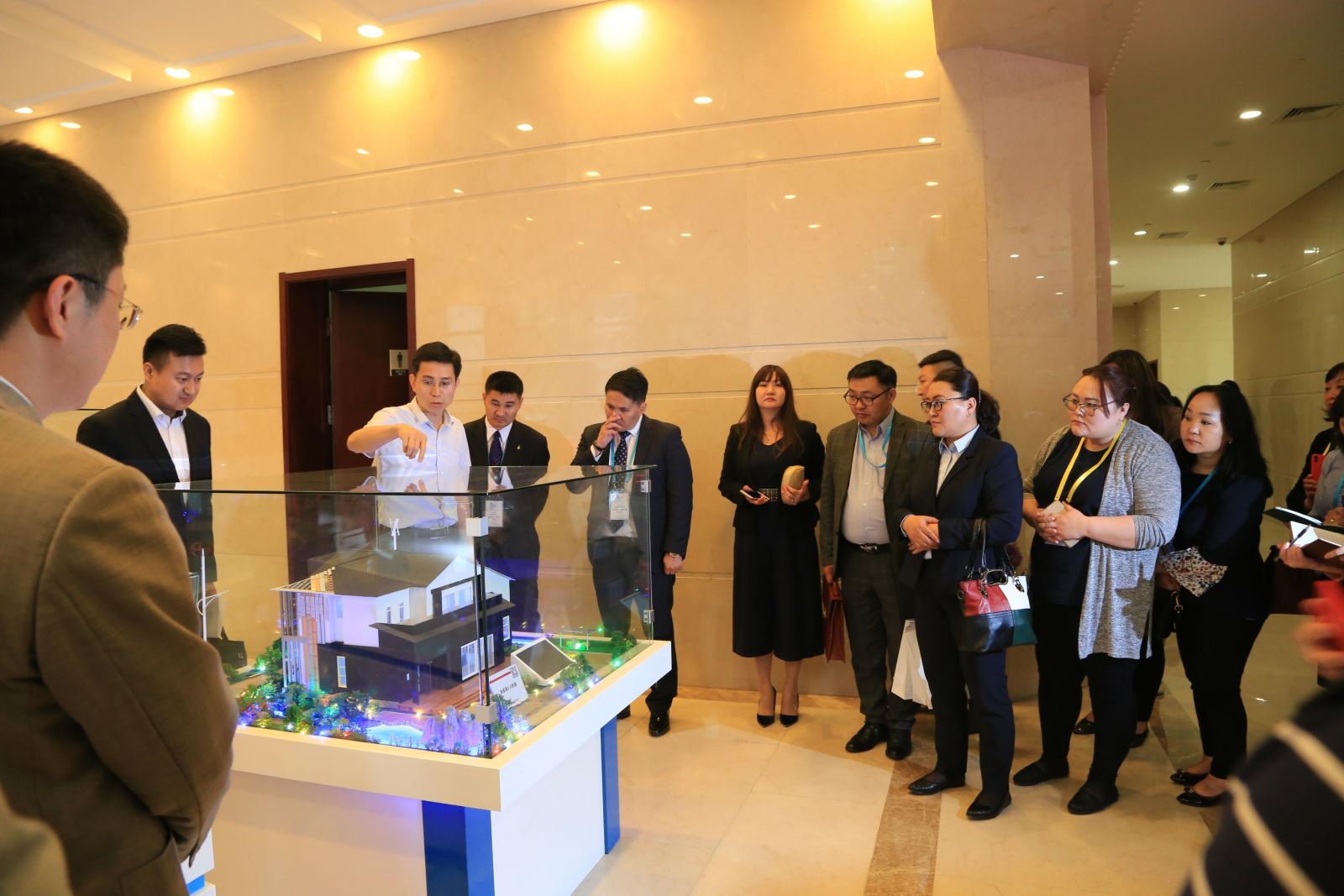 蒙古國記者訪華團一行參觀了一樓展廳,從水泥、玻璃等傳統建材產業和新材料產業創新發展情況兩個方面,分別了解了新型干法水泥生產工藝、浮法玻璃生產工藝、銅銦鎵硒薄膜太陽能電池組件、碲化鎘薄膜太陽能電池組件、新能源鋰離子電池隔膜材料、碳纖維、玻纖、風電葉片、加能源5.0房屋等創新成果的實踐應用和目前取得的成就。同時,蒙古國記者紛紛拍照留念,并就自己感興趣的成果提出問題,在聽取進一步細致講解的基礎上,對中國建材集團所取得的成就給予高度認可和評價。