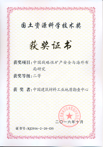 近日,國土資源部發布了《關于2016年度國土資源科學技術獎獲獎項目的公告》(2016年第24號),地勘中心參與完成的《中國戰略性礦產安全與海外布局研究》項目榮獲2016年度國土資源科學技術二等獎。