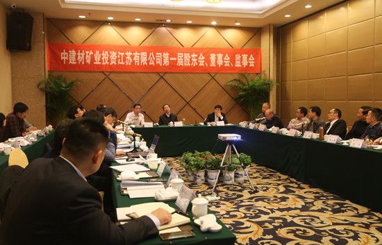 12月2日,中建材礦業投資江蘇有限公司第一屆股東會、董事會、監事會第一次會議在江蘇南京召開,公司股東代表、董監事推薦人選以及提名的公司高級管理人員等參加了會議。集團高級專務,地勘中心黨委書記、主任李建倫出席會議并作重要講話,地勘中心總會計師李彩洪應邀出席會議。