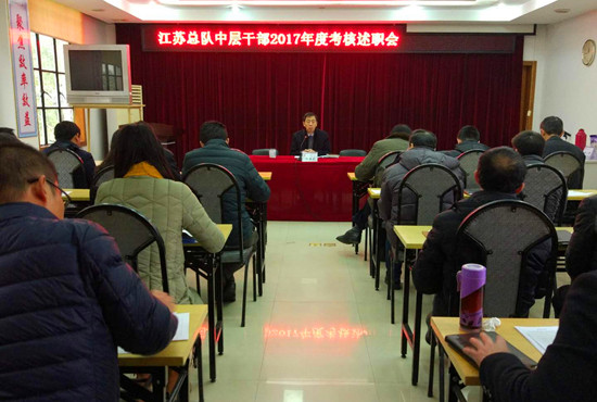 1月19日—22日,江蘇總隊召開2017年度中層干部考核述職會,總隊領導班子成員、中層管理干部、黨支部書記及考核組成員等參加考核會。會議由黨委書記、總隊長汪要武主持。