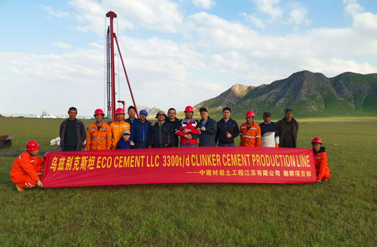 烏茲別克斯坦吉扎克市Forsh區新建3300t/d水泥生產線巖土工程勘察項目,是江蘇總隊中建材巖土工程江蘇有限公司協同北方平臺在烏茲別克斯坦開展的首個勘察工程項目。總隊領導高度重視,調派技術、施工骨干組成項目部,就項目實施方案及安全管理召開了專門研討會,根據項目特點制定了針對性措施。在項目部人員的努力以及業主、總包單位的配合下,設備運輸和安裝調試、人員進出、安全培訓等前期工作順利完成,控制點校準及鉆孔施放嚴格規范,鉆探施工及原位測試正在有序開展。