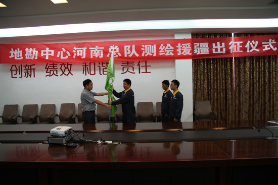 地勘中心河南總隊(duì)在接到河南省測(cè)繪地理信息局、河南省測(cè)繪地理信息產(chǎn)業(yè)協(xié)會(huì)的測(cè)繪援疆邀請(qǐng)后,高度重視本次工作,對(duì)測(cè)繪援疆工作表示支持與關(guān)心,組織了自愿參與測(cè)繪援疆突擊隊(duì)報(bào)名活動(dòng)。最終決定由馬強(qiáng)、程俊兩位共產(chǎn)黨員和入黨積極分子陳大千組成地勘中心河南總隊(duì)測(cè)繪援疆突擊隊(duì)。在出征儀式大會(huì)上,總隊(duì)領(lǐng)導(dǎo)高度贊揚(yáng)了三位自愿參與測(cè)繪援疆工作的突擊隊(duì)員,對(duì)其援疆工作、生活給予科學(xué)指導(dǎo),期盼突擊隊(duì)員早日凱旋歸來(lái)。三位突擊隊(duì)員表態(tài):一定遵紀(jì)守法,注重民族團(tuán)結(jié),積極工作,充分展示總隊(duì)風(fēng)采,力爭(zhēng)圓滿完成本次援疆測(cè)繪任務(wù)。總隊(duì)長(zhǎng)吳漢志向突擊隊(duì)員授旗。