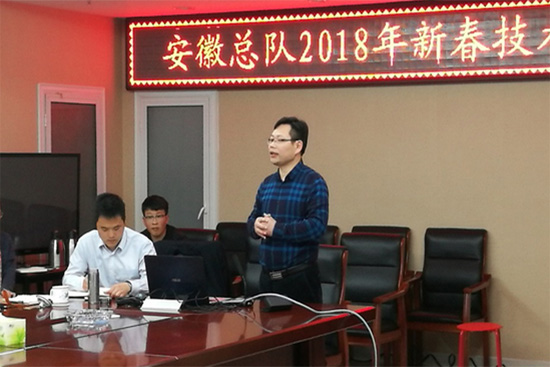 2月28日,安徽總隊組織召開了一年一度的新春技術交流會,旨在提高總隊技術水平,增進各專業的彼此認知,更好地落實總隊“十三五”規劃。會議由副總隊長、總工程師詹建華主持,副總隊長徐學軍,地勘院、工程勘察院、測繪院、地環院、實驗室等部門近40名技術人員參加會議。