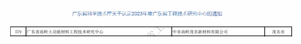 2024年4月7日,廣東省科學技術廳公布“關于認定2023年度廣東省工程技術研究中心的通知”,中非高嶺茂名新材料有限公司(以下簡稱“中非新材料”)榜上有名,順利通過2023年度“廣東省工程技術研究中心”認定,正式邁入廣東省工程技術研究中心行列。
