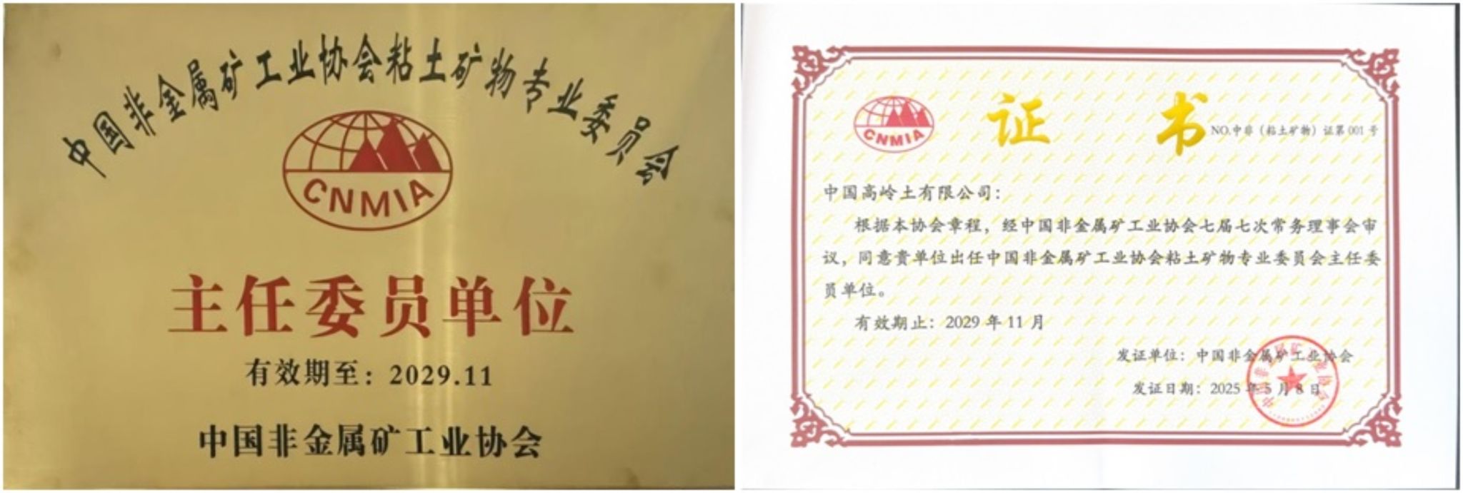 中國高嶺土有限公司當(dāng)選為中國非金屬礦工業(yè)協(xié)會粘土礦物專業(yè)委員會主任委員單位