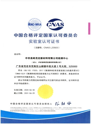 6月30日,中非高嶺茂名新材料有限公司檢測(cè)中心(以下簡(jiǎn)稱(chēng)“檢測(cè)中心”)順利通過(guò)中國(guó)合格評(píng)定國(guó)家認(rèn)可委員會(huì)(CNAS)認(rèn)可評(píng)定,獲得CNAS實(shí)驗(yàn)室認(rèn)可證書(shū),成功躋身國(guó)際互認(rèn)實(shí)驗(yàn)室行列!這不僅表明檢測(cè)中心具備了按認(rèn)可能力范圍開(kāi)展檢測(cè)服務(wù)的技術(shù)能力,也體現(xiàn)了公司領(lǐng)導(dǎo)對(duì)質(zhì)量體系建設(shè)的高度重視,更是公司貫徹“質(zhì)量強(qiáng)國(guó)”“科技自立自強(qiáng)”戰(zhàn)略的具體實(shí)踐。