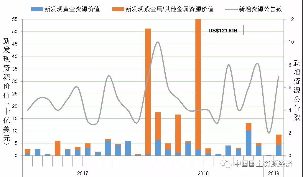 重要鉆探公告數量同比減少14%,新增資源價值僅為2018年同期的13%。2019年1月和2月,全球鉆探活動公告數量分別為259項和201項,同比減少5%和24%。2019年1月和2月,全球新增資源公告數分別為2項和7項,總價值分別為3億美元和85億美元,僅為2018年同期的0.6%和49%(見圖2)。