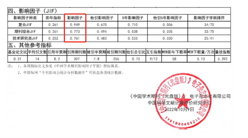 近日,中國知網“中國學術期刊影響因子年報(自然科學與工程技術·2022版)”權威發布。《中國非金屬礦工業導刊》期刊復合影響因子達0.949,比上一年增長0.317,增幅50.16%,在75種礦山工程技術類期刊中排第34位;期刊綜合影響因子0.773,比上一年增長0.22,增幅39.78%,排第33位。兩項影響因子均為創刊以來最高值,學科排序較2018年分別提升18名和22名。期刊影響力指數(CI)學科排序較上一年提升7名。此外,期刊技術研究影響因子、總被引頻次、WEB下載量等各項參考指標均有顯著提升。