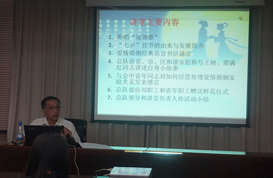 8月28日,農歷七月初七,是我國傳統的“七夕節”。總隊組織單位領導、中層干部及職工代表,開展了2017年第三期“道德課堂”暨歡度“七夕節”活動。