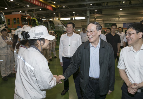 9月3日至5日,中共中央政治局常委、中央紀委書記、中央巡視工作領導小組組長王岐山在湖南省調研并主持召開巡察工作座談會。這是9月4日,王岐山到中國中車株洲電力機車有限公司考察。(新華社記者 王曄 攝)