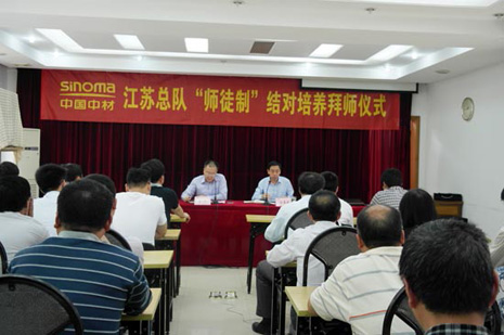 在簡樸而熱烈的拜師儀式上,總隊長汪要武對推進“師徒制”對接培養作動員講話,他分析了總隊人才梯隊建設的現狀,闡述了推進“師徒制”培養模式的目的、意義和必要性,并對推進和落實好“師徒制”工作提出了具體要求。導師代表總隊副總工程師徐斌、徒弟代表青年職工楊永飛,分別代表導師和徒弟在儀式上做了精彩的發言。