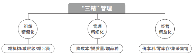 “三精”管理的核心內容是組織精健化、管理精細化、經營精益化。組織精健化就是減機構、減層級、減冗員,各企業要保持壓減節奏,避免企業膨脹、管理不到位出現“跑冒滴漏”。管理精細化就是降成本、提質量、增品種,各企業要深入實施八大工法、六星企業、增節降等管理工法,全面落實成本費用節約計劃,加強質量管理,增加產品種類。經營精益化就是價本利、零庫存、集采集銷,各企業要繼續堅持“價本利”經營理念,聚焦市場,穩定價格,以銷定產,實時生產,集中采購銷售,爭創更大效益。